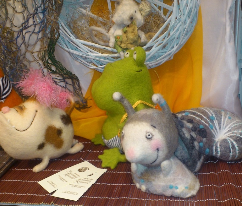 Вот мой фаворит на вчерашней выставке. Несмотря на то, что по объективным причинам не смогла стать хозяйкой улитки Эйлы (валяной и довольно крупной), но мне довелось подержать ее в руках - это такое теплое очарование, такая она радостная, яркая, красотка!