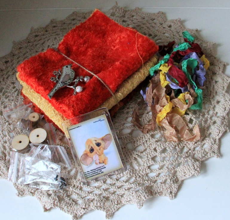 И вот такие шикарные материалы для творчества от Натальи. Магнитик со слоником ее работы просто очаровательный)) И птица-брошь ручной работы подойдет к моему новому серо-голубому свитеру.