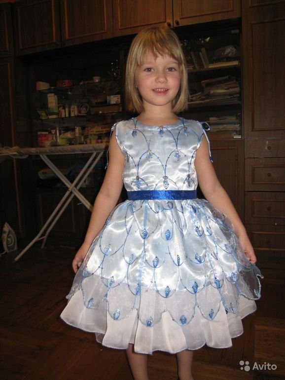 Атлас с отливом уже образ создаст, поэтому можно не делать неровные края. Либо сшить ровную пышную юбку, а сверху неровные края атласа другого цвета - голубого, к примеру.