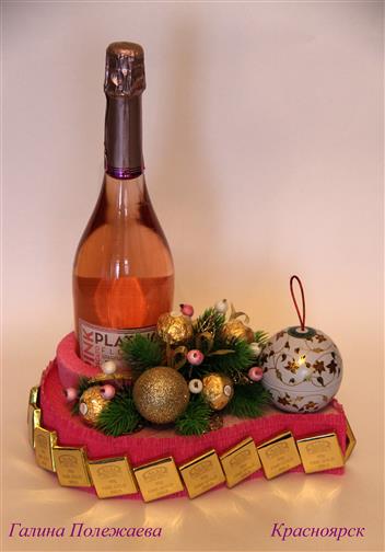 Спасибо! Я так люблю своих заказчиков, но они такие бывают...Сначала тетенька хотела прям на бутылки мартини, коньяка, виски наклеить конфеты и это всё для важных дяденек и тетенек, а когда я предложила свой вариант она ещё каждую композицию осматривает и пальчиком показывает что не так....аппетит растет быстро