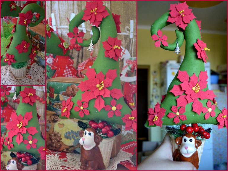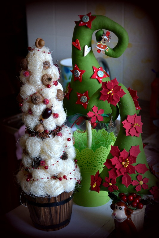 Сделала 3 елочки!2 сшитых- в стиле Тильда выкройка,3я из сизали
