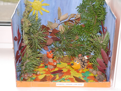 Поделки с детками.)))) У всех подготовка к Новому году, а у меня "Золотая осень" Конкурс поделок проходил в школе у старшего сына. Покажу его работу(сделал практически все сам), и покажу работы других участников конкурса.