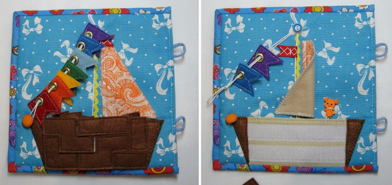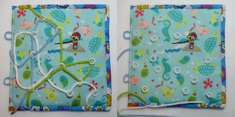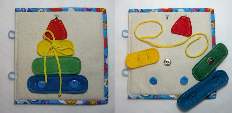 Страничка 6 - пирамидка - застежка на петли и пуговки, кнопки, шнуровка, петля и крючок.