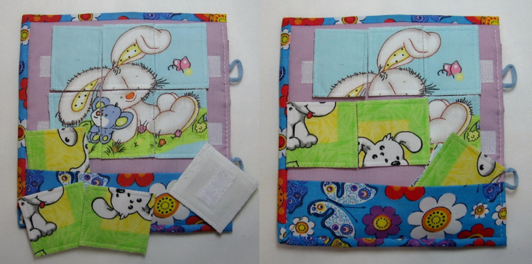Третий разворот посвящен пазлам и развитию мелкой моторики.