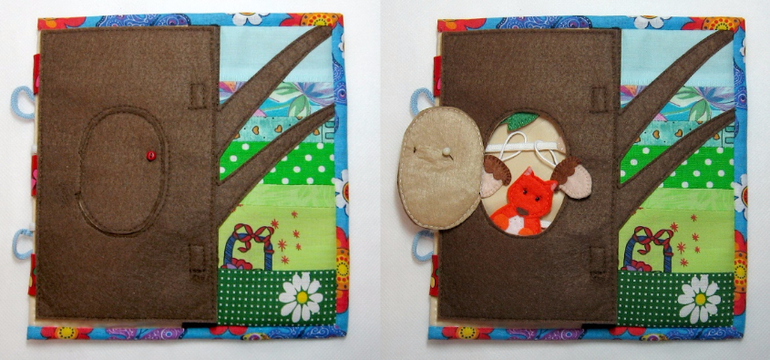 Последняя страничка - это обложка с карманом. В карман можно положить вкусняшки или фотографии мамы-папы, бабушек-дедушек.