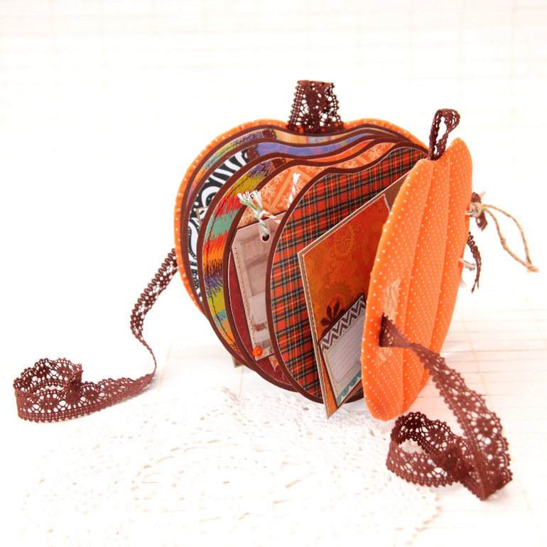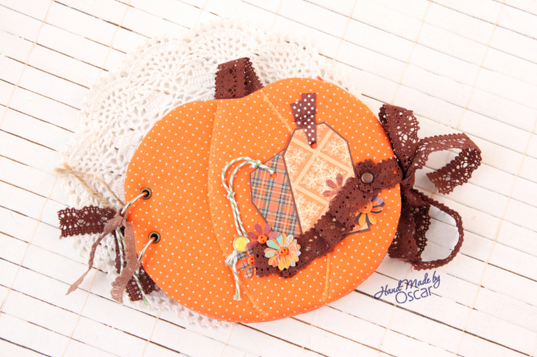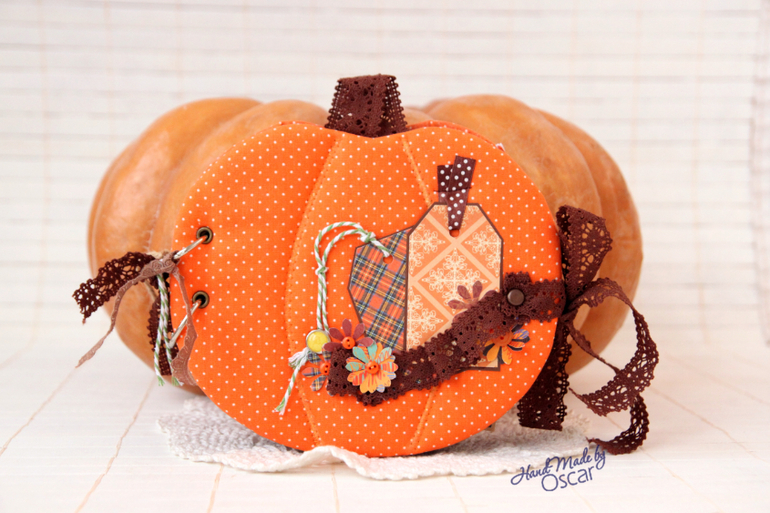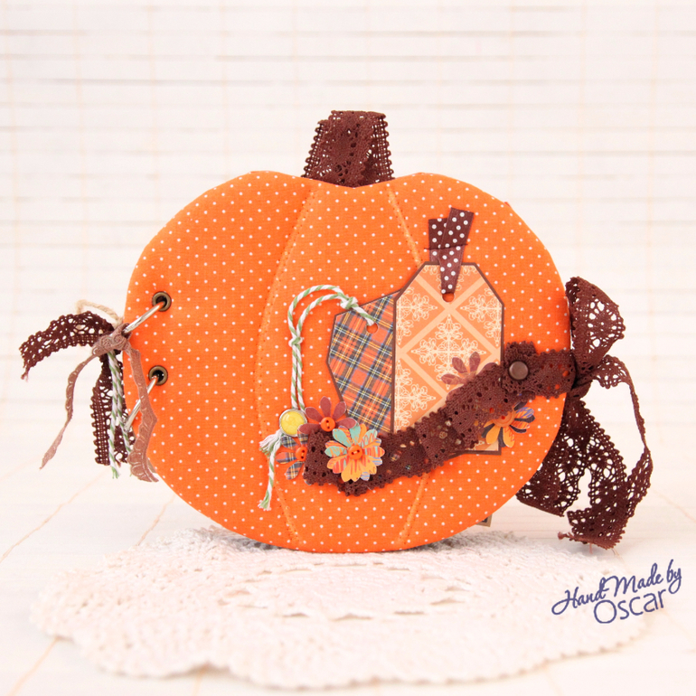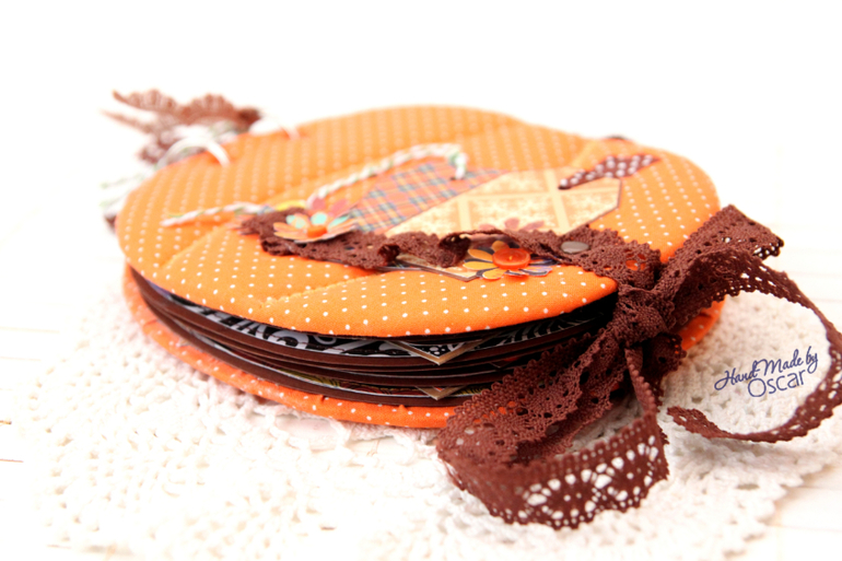 Обложка в форме тыковки из сочного хлопка, основные цвета - оранжевый и коричневый