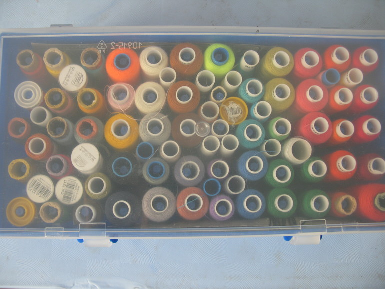 Мой рабочий уголок, запасы, инструментыДевочки, хвастаюсь! Я стала наконец-то обладательницей отличного Бокса для ниток. Раньше нитки хранились в пакете, замучилась их доставать-искать нужный цвет. И конечно же главная проблема они разматывались, теперь с этим покончено ))) Бокс рассчитан на 55 стандартных катушек. Но штифты сделаны таким образом что между катушками полной намотки, можно поставить еще и другие катушечки - меньшей намотки. У Бокса есть крышка, т.е. у меня он хранится в ящике значит на него можно будет еще что-то положить или поставить. Короче похвалилась ))))) Я довольна. Кстати Бокс ручной работы.)))