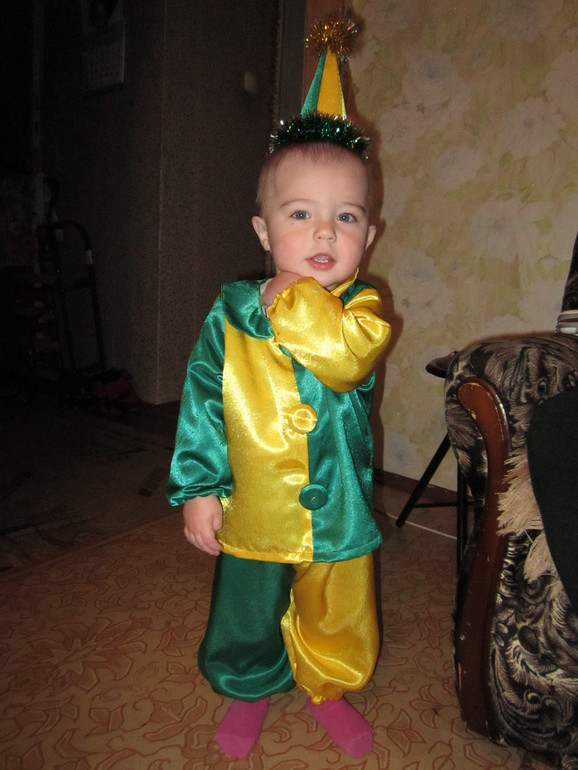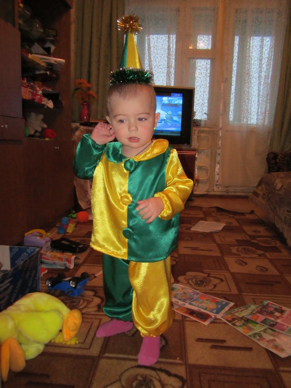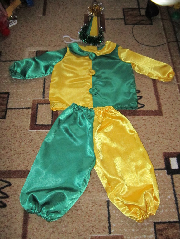 Шитье одежды, выкройки, ремонт одежды, шторы, швейные машины (уже приобретенные)Я долго думала как нарядить моего сынишку к НГ.Но т.к. купить костюм нам не по карману,я решила сшить. Купила крепсатин зеленый и желтый это все что в нашем поселке можно купить из нормального кроме ситца или бязи.И вот что у меня получилось ,а получился костюм петрушки.