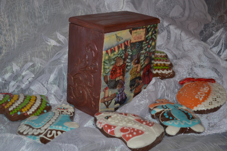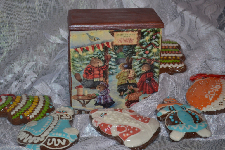 ДекупажВсем доброго дня! Для новогоднего печенья родился вот такой короб, прошу к просмотру