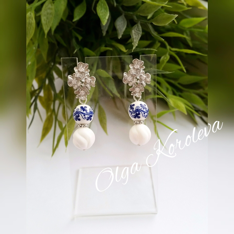 Бижутерия для слингомам. Слингобусы. Грызунки.Самые зимние цвета - белый и синий, да еще и узор как на заснеженном окне. Комплектик для родственницы, молодой супруг захотел подарить своей красавице-жене мое украшение. Они такие молодые, милые и трогательные! Поэтому много белого и изящные серьги.