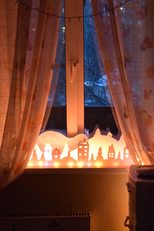 Не,я с интересом посмотрела на второй вариант) он совсем другой - больше деталей, кропотливее) но вот крепление к подоконнику - целая конструкция))) у меня скотч - все.Между рядами гирлянду положила и готова красота)