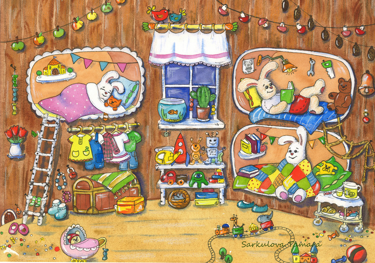 Тома , какие же они прелестные детки - зайчатки !!!!! И домик в деталях милейший и так трогательно душевный !