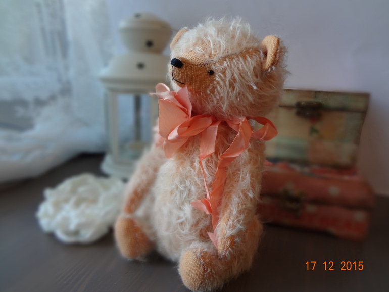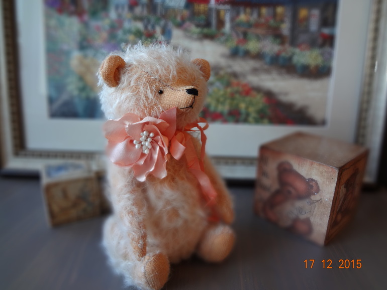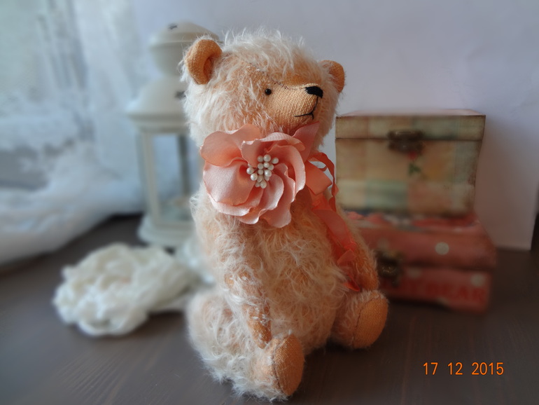 Игрушечный мир - животныеМишутка получился таким пушистым и милым. Сшит из мохера,набит плотненько опилочками,утяжелен,приятно тяжеленький. Ростик 20см. Шплинтвое крепление,голова плавно покачивается,ручки и ножки подвижны. Мишку украшен цветком ручной работы и шебби лентой. Сшит мишутка на одном дыхании,с большой любовью и теплом)).