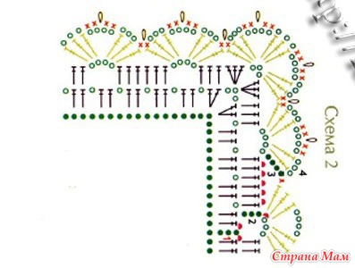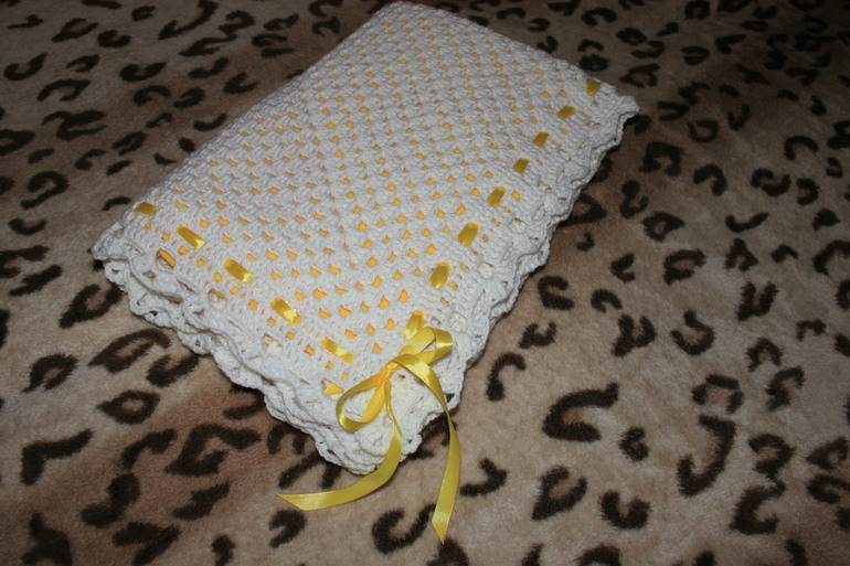 Спасибо! Основное полотно бабушкиным квадратом вяжется, погуглите. Потом 1 ряд столбиками без накида, 1 ряд столбиками с 1 накидом (через них ленту протягивала), а потом кайма по этой схеме: Только на 4й ряд пряжи не хватило:)))