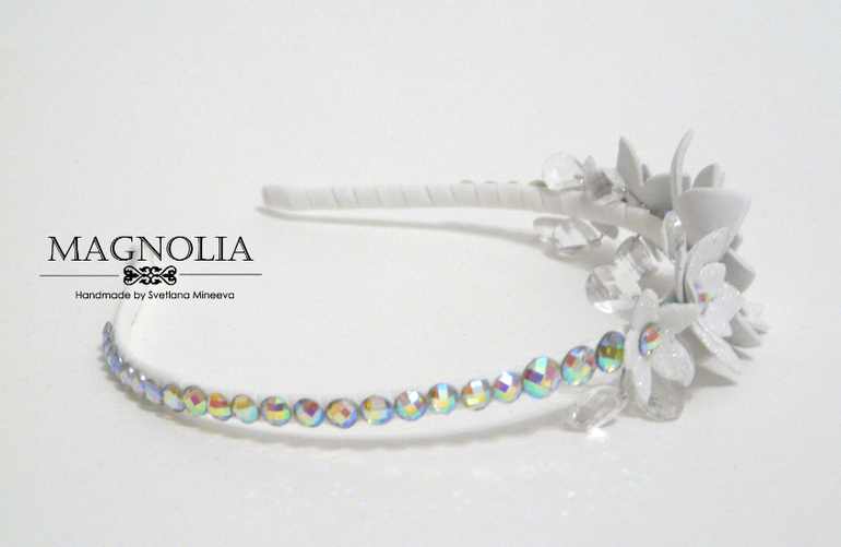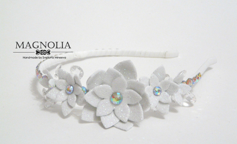 В итоге сделал доченьке такой ободочек, цветочки из фоамирана вырубала на машинке