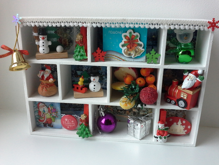 Декор, витражи.Задумала сделать такой шэдоу бокс прошлой зимой. Долго собирала разнум мелочь с новогодней тематикой. Сам яшичек тоже дался не просто, но благодаря мужу собрался. Очень рада, что идея воплотилась. Теперь осталось придумать крепление и разместить. Размер 23 на 16 см.