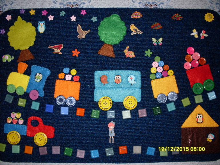 И,конечно же,Дмитрий не остался без подарков-получил множество всевозможных раскрасок,плакат с наклейками,пазл с любимыми машинами(два дня из рук не выпускает!)) И....волшебную развивашку!!! У Настеньки золотые ручки-столько мелких деталей!,все на липучках+детали из фетра-все очень аккуратно обшиты! Просто волшебный подарок!! Думаю,что наш,не очень усидчивый мальчик будет играть с ней очень долго.)