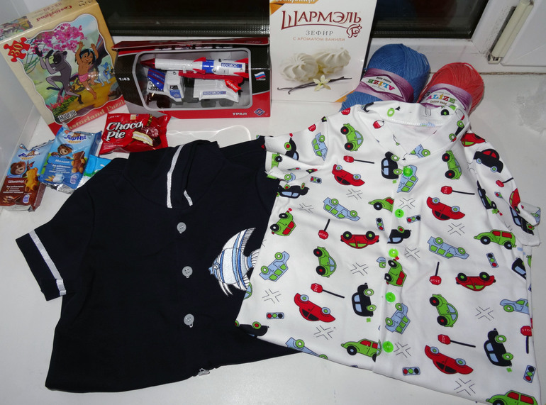Для Ромашки пазл, машинка и вкусняшки. Пазл сразу собрал, машинкой очень доволен. не было у него еще такой "космической" машинки. От Ромика отдельное спасибо Оленька!
