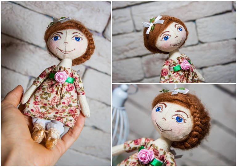 Такая вот малышка. Ростик у нее 19 см, сшита по выкройке из журнала, даже не знаю чья она). Такое простое и косенькое личико, но она все же мила мне эта кроха)) Чтож, набираюсь умения и делаю следующую)))