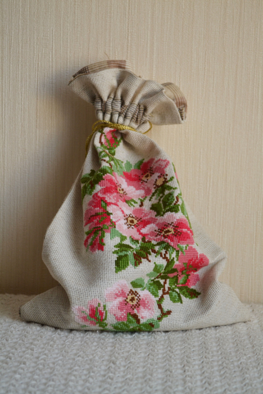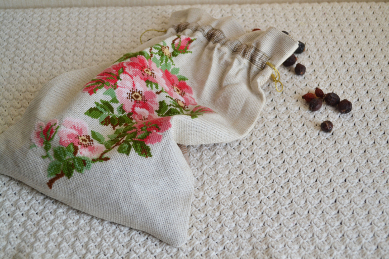 А вот это добро - то, ради чего вообще все задумывалось и из-за чего все началось, закрутилось и завертелось! Мешочек для шиповника (шиповник прилагался)))), вышит по замечательной схеме, для меня, и сшит заботливыми Таниными ручками!
