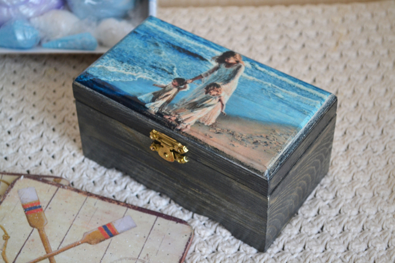 Начнем с морской темы! Это все мнеее... Тильду Таня шила сама! Подставки под кружки, очень нужно, тк дома у нас кружки постоянно таскаются повсюду. Шкатулка...до слез тронула картинка, просто до глубины! Открытка с пожеланиями...