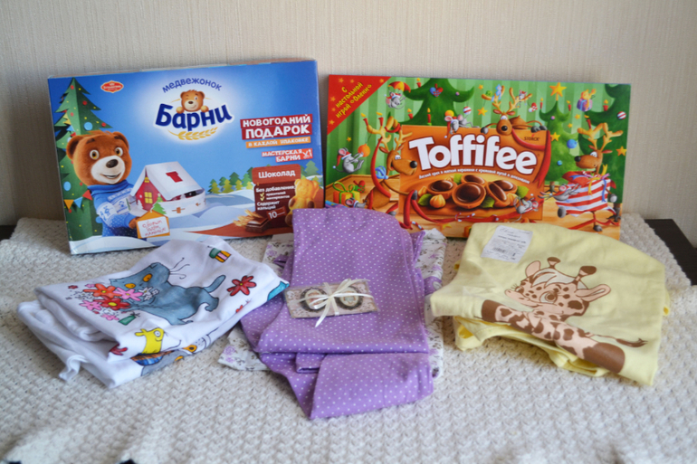 Здесь сладкие подарки и все обновки дочкам. а сверху там две брошечки с совами, они еще появятся внизу)))