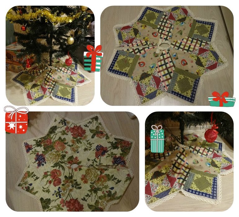 Декор, витражи.Ёлка, она же тоже девочка-красавица, ей тоже хочется нарядов! Вот и у ёлки появилась юбка - скрывает подставку, провода от гирлянды, украшает интерьер, да и коробочки с подарками смотрятся гораздо эстетичнее на юбке, чем на полу :)
