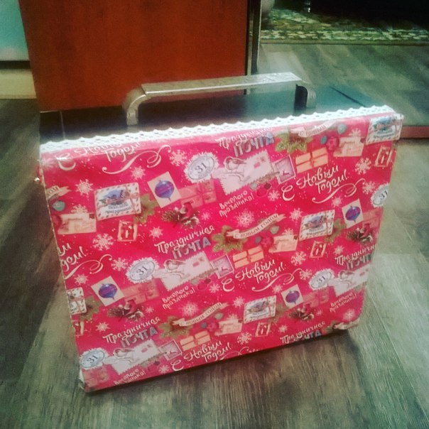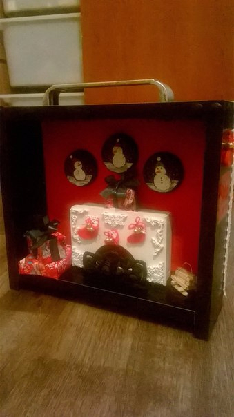 сам дом из обрезков)) досочки остались от мебели, прибила их к фанерке, фанерка была некрасивая, ее обернула бумагой оберточной, а спереди войлок красный. На досочках дырки были, их мебельными заглушками прикрыла, на клей посадила и краской акриловой покрасила. ручку присобачила и готово))