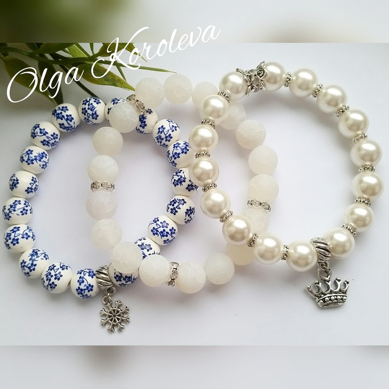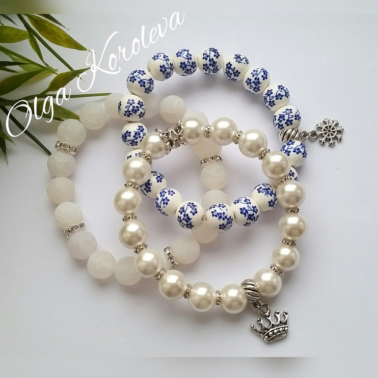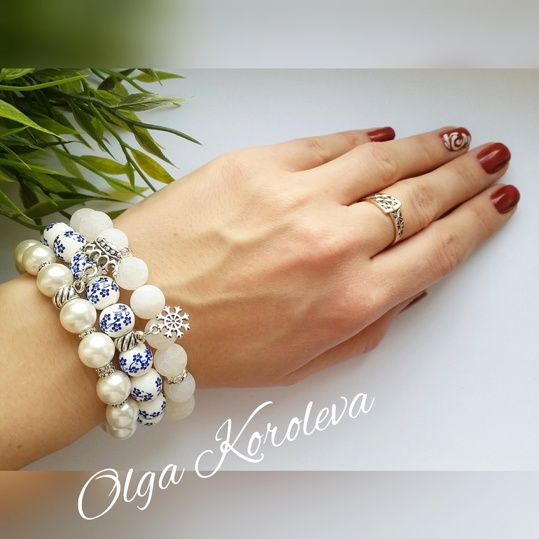 Бижутерия для слингомам. Слингобусы. Грызунки.Когда еще лежал снег (звучит странно для 22 декабря=))), сочинился по-настоящему зимний комплект из матового белого агата, керамики с рисунком и жемчугом.