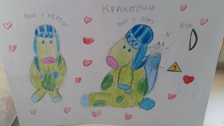 У них был конкурс детских рисунков и потом дизайнеры сшили игрушки по рисункам победителей)