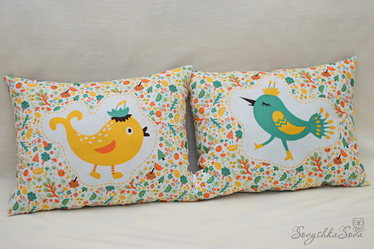 с птичками очень позитивные и яркие подушечки вышли... как раз для зимы !!! а где такой хлопок покупали ?