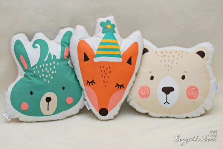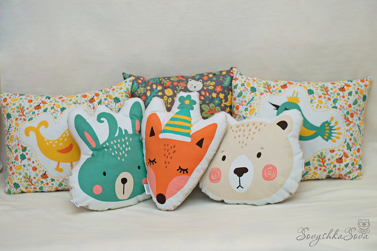 Шитье одежды, выкройки, ремонт одежды, шторы, швейные машины (уже приобретенные)Подушки из корейского хлопка. Шила для новогодней ярмарки, которая проходит в нашем городе. Мордочки - это принт на ткани.
