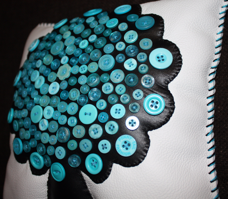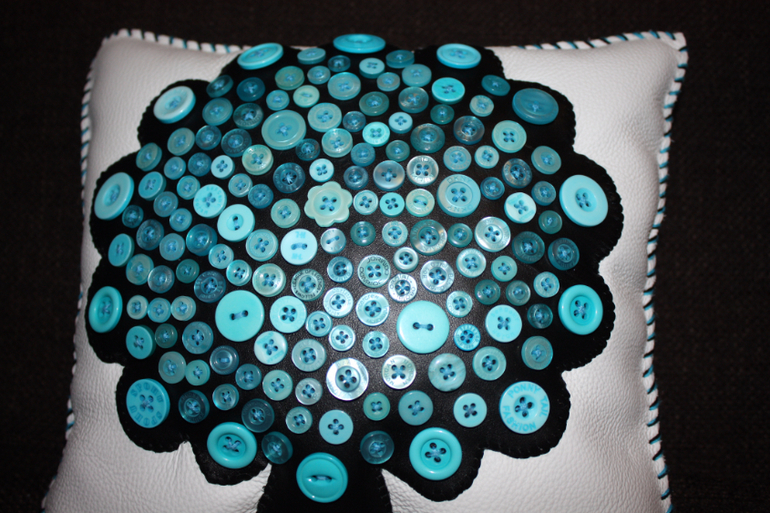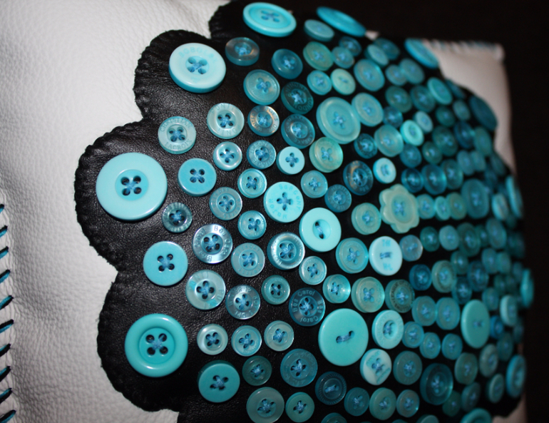 Подушка из кожи "Бирюзовое пуговичное дерево".