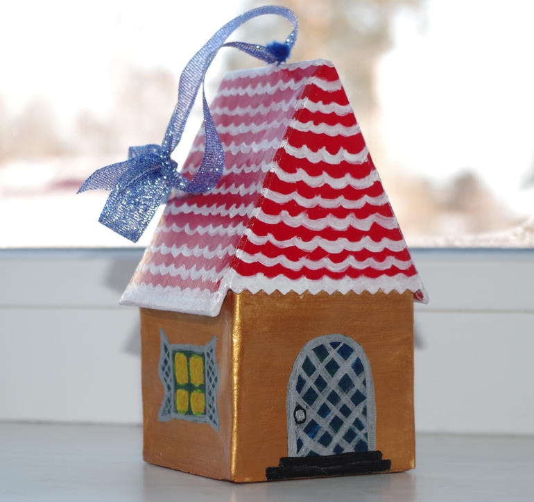 А этот домик раскрашен мамой - пойдет игрушкой на новогоднюю ёлку.