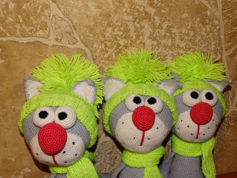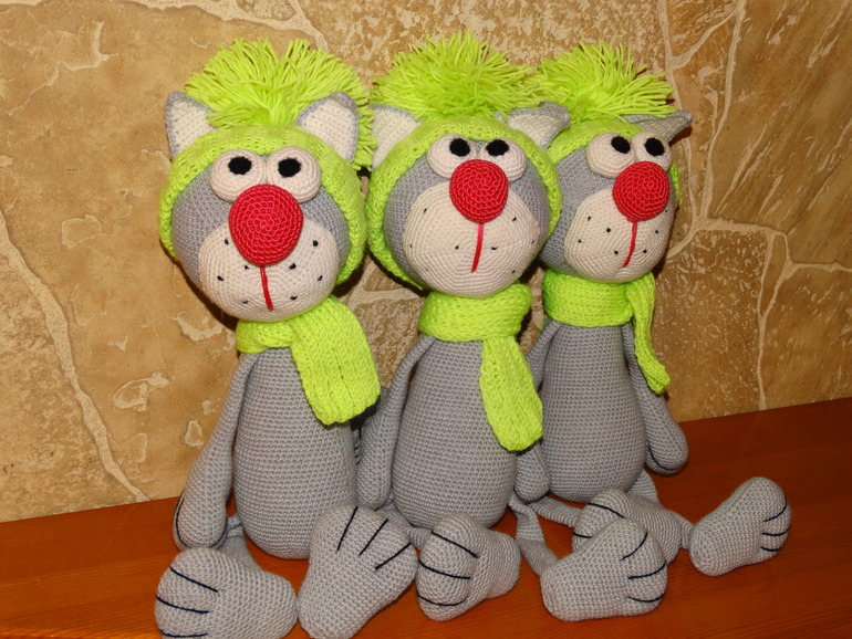 Вы что, их сами связали!!!??? Обалдеть.... Суперские котяры!!! А шапки!!!! Жаль у меня на такое терпения не хватает....