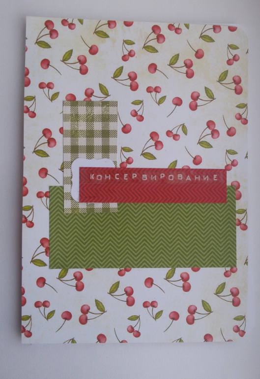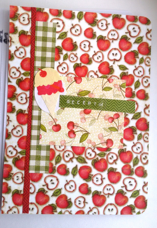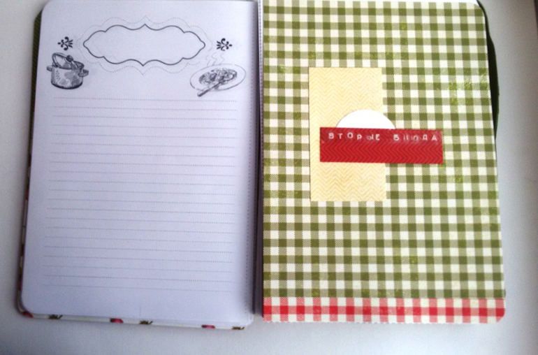 бумага польского производителя "к чаю", обложка из переплетного картона, бархатная резиночка, чипборд, штамп, мет. подвески ложки и вилки и брадсы.