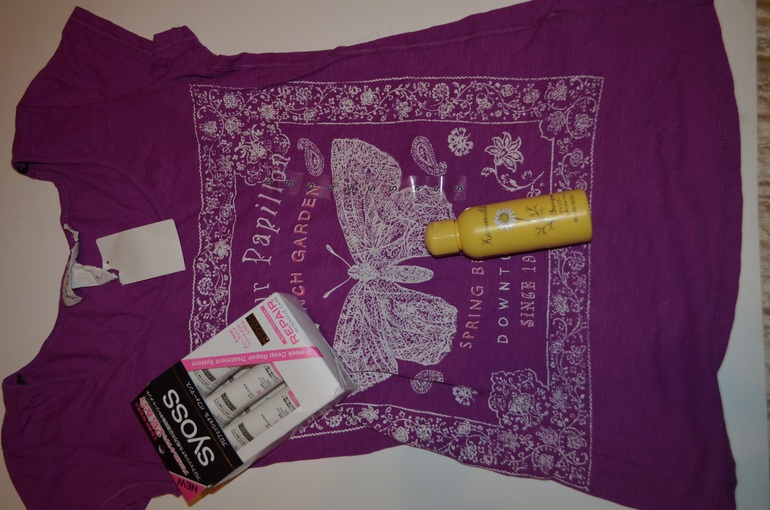 Красивенькая и тоненькая, такая приятная к телу футболочка! Надеюсь к лету уже влезу в нее))) Будут обновки к лету, красивенькая с колясочкой гулять))) И косметические средства, целый наборчик большой, сегодня опробую обязательно!
