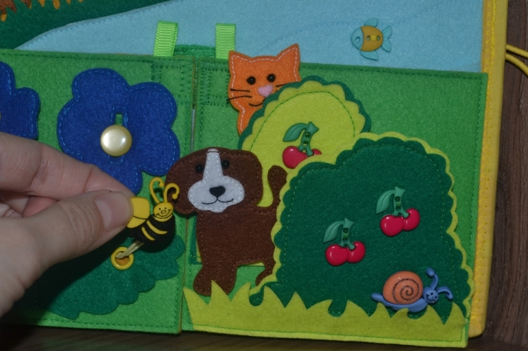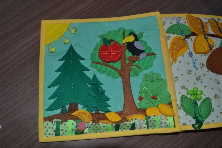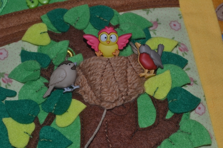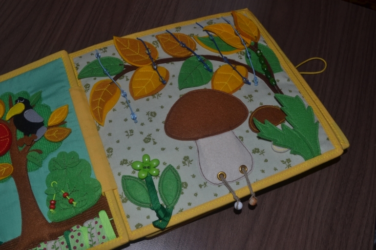 Потянули вверх, гриб и вырос( идею увидела на б.б) Маленький гриб на липучке, гусеница ползает по ветке, а за листьями спрятались бабочка и птичка
