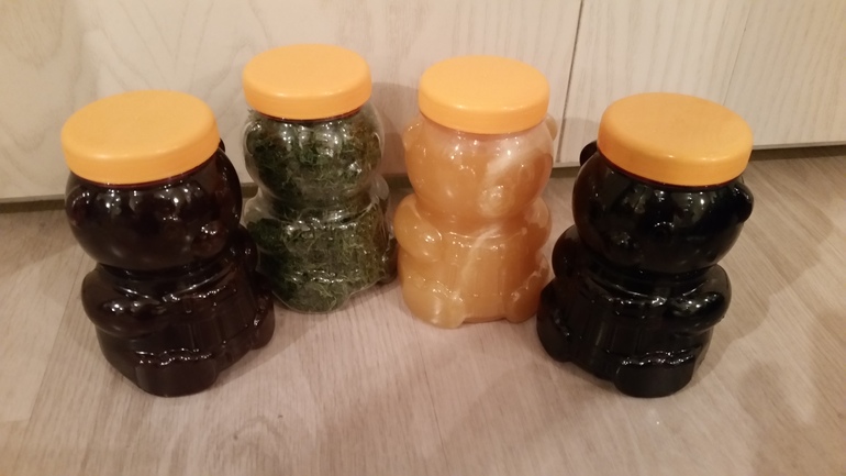 Варенье (очень вкууусное), башкирский мед (такой пахучий) и зелень.