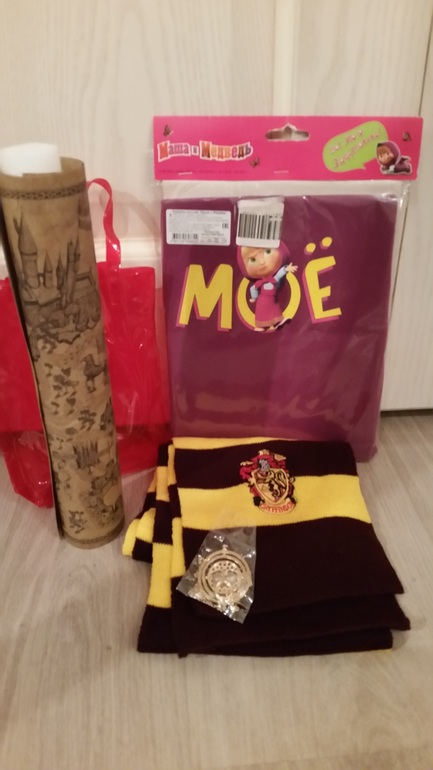 Дочери футболочка и атрибутика Гарри Поттера.