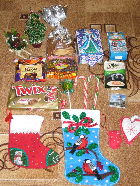 Татьяна,хочется поблагодарить,за такие замечательные подарочки и чудесные рукоделочки! Спасибо огромное тебе,ты подарила нам с Димой настоящее предновогоднее настроение и море позитива! Посылочка очень замечательная и чувствуется что собрана с душой! Я очень ценю это! И еще раз убеждаюсь,что мне везет на таких чудесных фей))))С наступающими праздниками и всех благ твоей семье!!!!