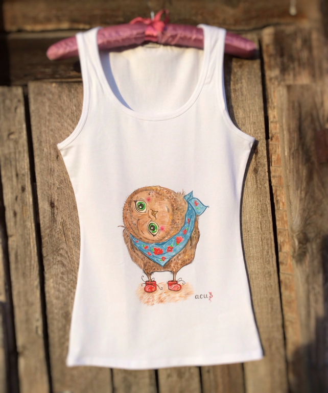 Какие замечательные работы!!!! От расписанной одежды я вообще в восторге!!!Лена, скажите пожалуйста, можно ли заказать у вас маечку с совой как третья снизу на р.42?
