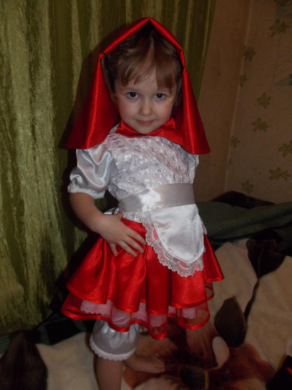 Очень здорово! Корсет очень интересный! Нам бабушка тоже шила костюм красной шапочки...но так как у нас девочка полтора годика, то мы решили шапочку заменить на накидку, с капюшоном, и то доча снимает его вечно((((