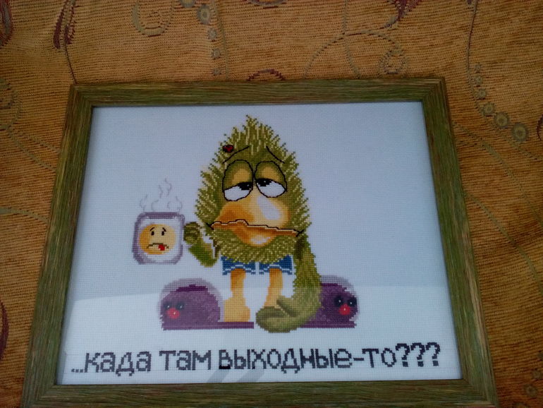 Вышивка картин. Крестиком, гладью, бисером, стразами, лентами, схемы по вышивкам, процессыКак-то я просила забросать меня небольшими схемками на тему начальник/строитель. Тогда муж попросил меня вышить небольшую картину на день рожденье для своего начальника. Спасибо большое всем, кто откликнулся. Из всего разнообразия выбрала "Зелепуку"