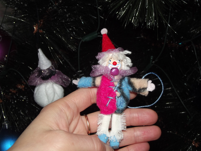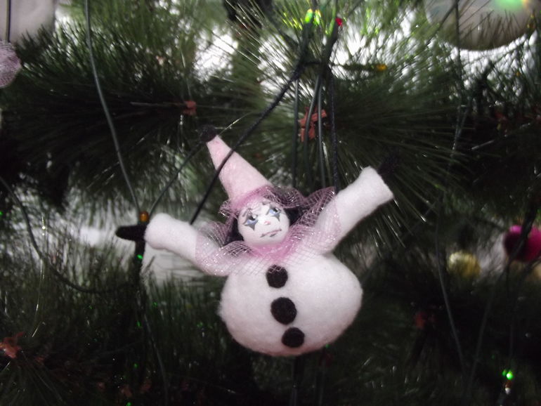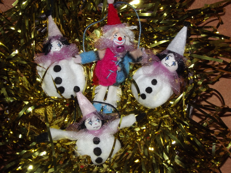 Вчера родились вот такие ёлочные игрушки - три Пьерошки и клоун.