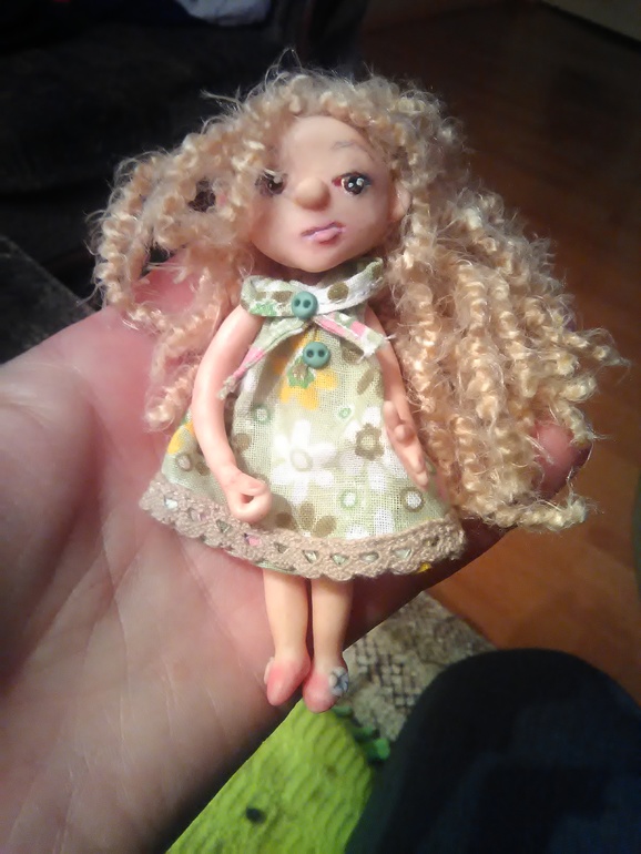 Она чем-то явно не довольна или просто ехидничает "Ага, дождалась, что пластика высохла и крошится..." Я хотела исправить ручки и.... пальчик отпал, оставила как есть, тоже опыт.