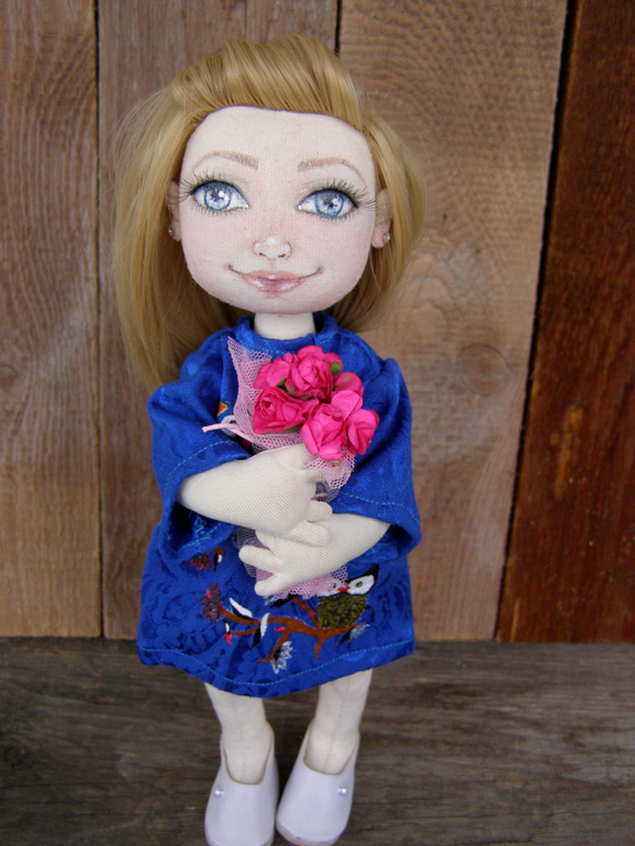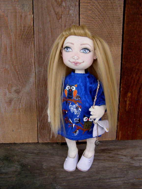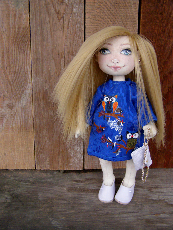Кукольный мир - человекоподобные куклыСшита куколка на заказ для очень красивой девушки с роскошными волосами и прекрасными голубыми глазами. Принт платья нарисован акрилом. Ручки на каркасе, пальчики сгибаются. Все аксессуары ручной работы. Вся одежка съемная. Ростик около 30см. Подробнее под катом..восемь фото