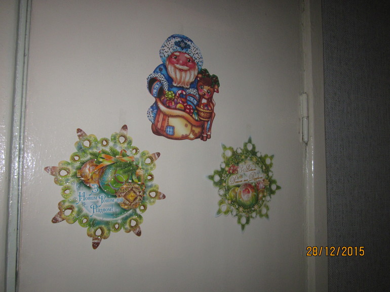 25 декабря - украсить окна вытынанками(все было вырезано заранее)