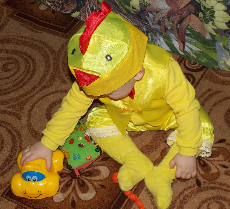 Хвастаюсь последней своей работой в уходящем году))) Сшила сынуле из остатков ткани костюмчик))) В первый свой Новый год будет он желтеньким цыпленочком)))
