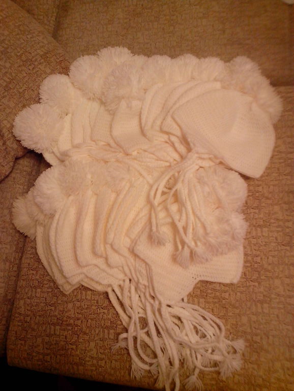 Спасибо! Я долго думала браться или нет, времени было достаточно,чтоб делать небольшие перерывы. Вязала по шапочке в день, иногда не вязала вообще, иногда успевала по две. Помпоны вообще муж мотал, без него я наверное не уложилась бы в срок)